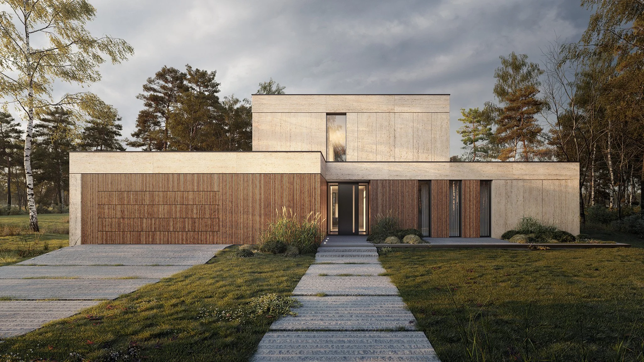The entire house has been designed to further assimilate with the surroundings over time. Decorative plants, gently blooming paths, and carefully chosen elements of small architecture gradually create a coherent composition with nature. The house becomes like a pebble thrown onto a nearby shore, fitting perfectly into the picturesque landscape.